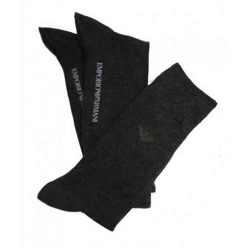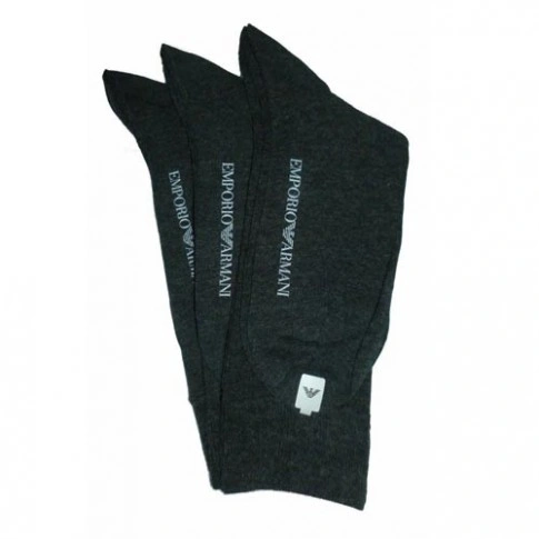 Chaussettes Emporio Armani en pack de 3 petites mailles. Logo eagle et inscription de Emporio Armani en verticale sur la basse de la chaussette.