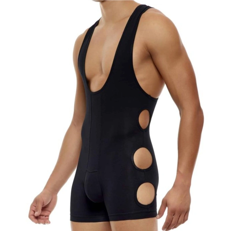 Le body possède trois ouvertures rondes de chaque cotés de la pièce et un décolleté prononcé.