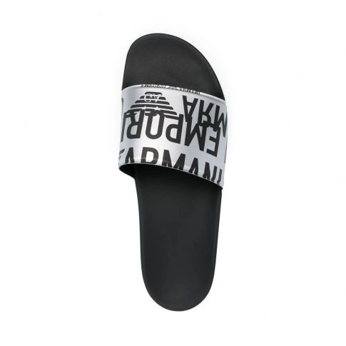 Claquettes argentées avec lannière logotée Emporio armani en noir