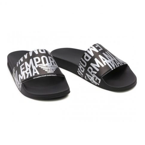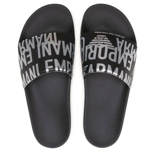 Claquettes noires avec lannière logotée Emporio armani en argenté