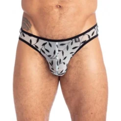 Mini slip esprit bikini taille basse en tulle transparente. Motif feuilles d’olivier pour un look sexy et estival inspiré des paysages du sud.