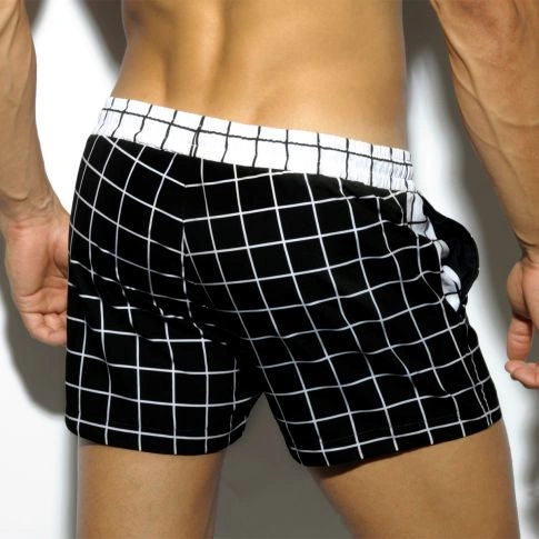 Short de bain court ES COLLECTION pour homme. Ceinture de taille élastique et lacet de serrage logoté. 2 poches latérales. Filet de bain intérieur U-shape.