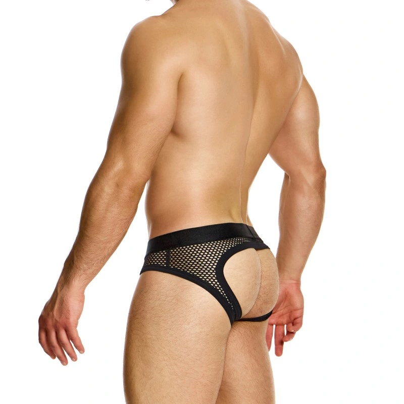 Slip bottomless (ouverture à l’arrière) en crochet noir et blanc MODUS VIVENDI.