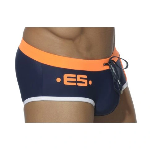 Slip de bain ES COLLECTION avec pack up (coque mousse amovible). Coupe sport. Cordon de serrage. Bordures contrastées. ES floqué sur l’avant.