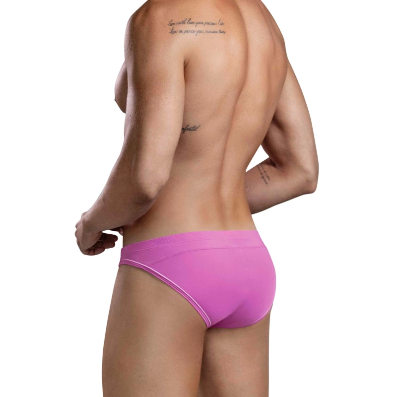 Slip MIRAGE PIPING rose framboise de la marque CLEVER. Des lignes blanches sont présentes sur le bord des coutures du sous-vêtement.